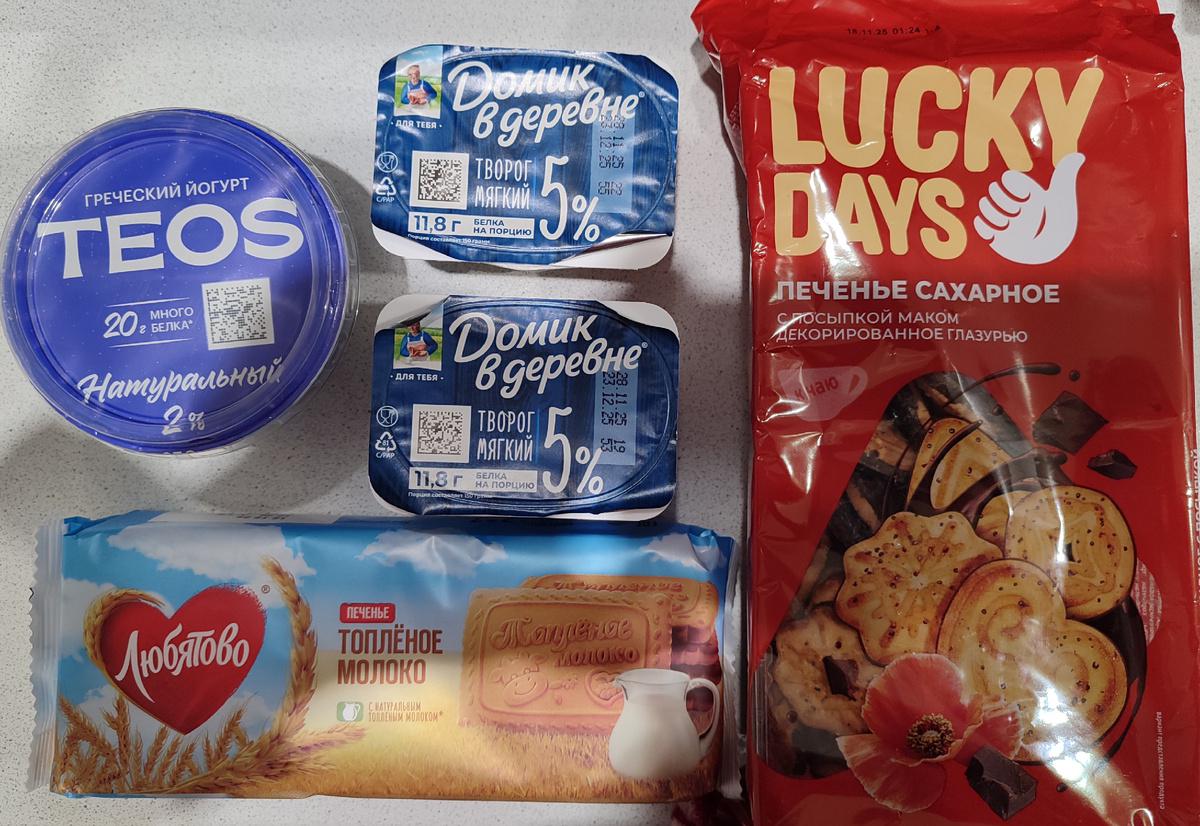 Нужны только греческий йогурт/мягкий творог и печенье. Ну, и для "тирамису" чуточку какао.