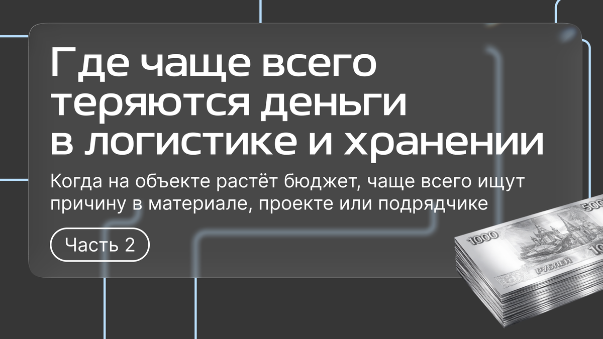 Но одна из самых недооценённых статей потерь — логистика и хранение. Именно здесь деньги «утекают» тихо: без очевидных ошибок, но с накопительным эффектом. В строительстве логистику часто воспринимают как сервисную часть: