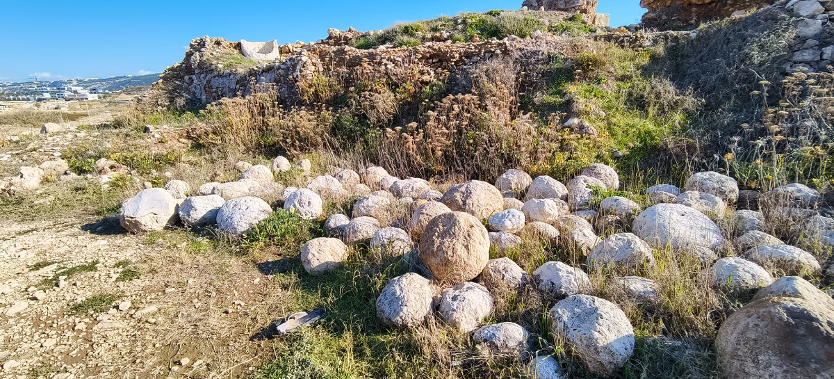 Как думаете, что это за большие каменные "мячи", которые в большом количестве лежат там, где когда-то была крепость крестоносцев? Вот такие они. Не исключено, что форма у них раньше была более правильной. Покоцались в результате процесса использования. Есть большие, и есть поменьше. Не исключено, что так и было задумано. Разный "калибр". Сдаетесь? Это.. .каменные ядра. Для катапульт. В средневековья такие использовались в регионе, в дамасской цитадели куча, правда, не очень больших, насколько помню.