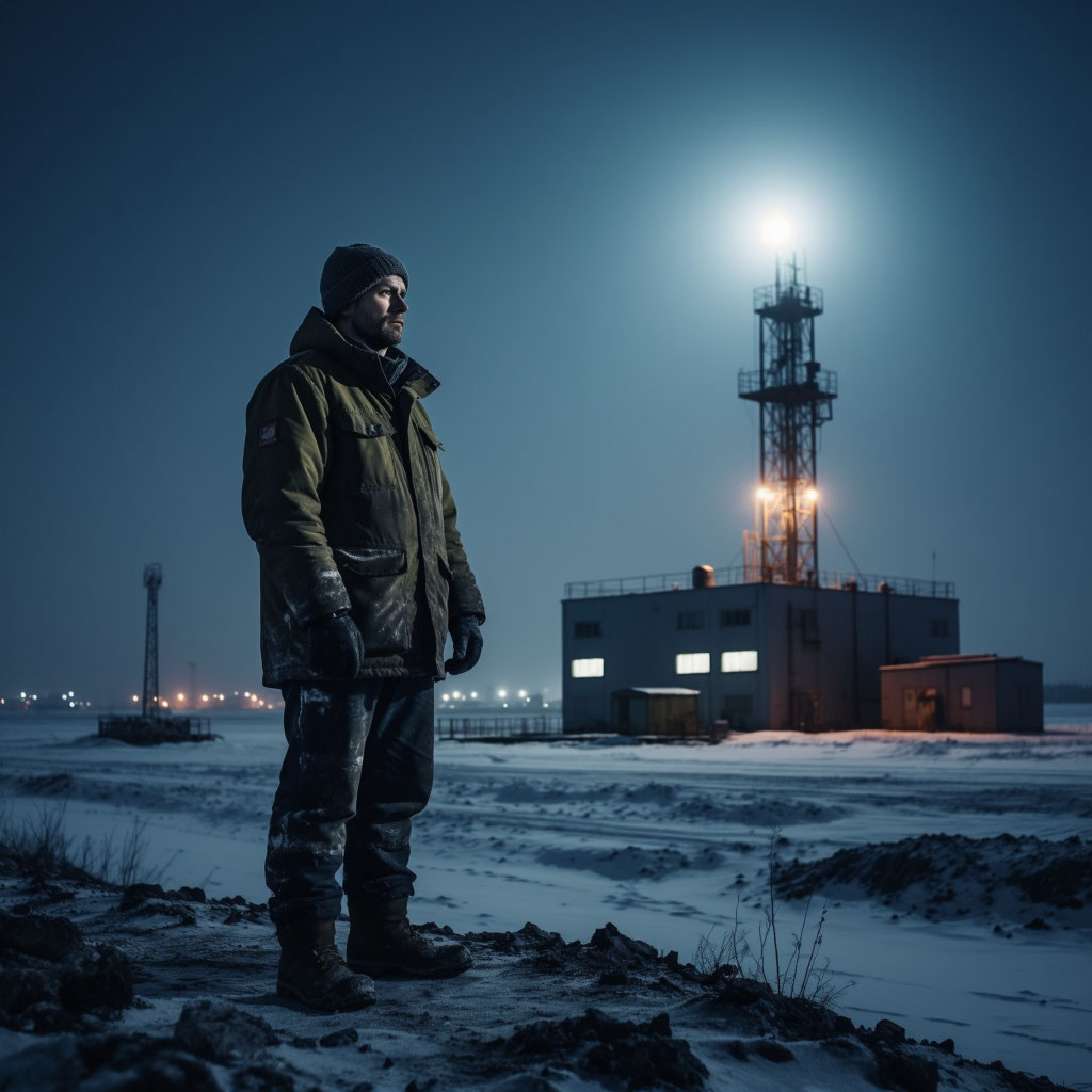 Было около трёх утра. Ноябрьская тьма лежала на земле плотным одеялом, лишь редкие фонари освещали периметр нефтедобывающей станции. Олег обходил территорию — привычно, без спешки, проверяя замки, прислушиваясь к гулу оборудования. В наушниках тихо играл шансон, но он то и дело снимал один, чтобы слышать окружающую тишину. Тишина здесь особенная — не мёртвая, а будто дышащая, полная скрытых звуков.
