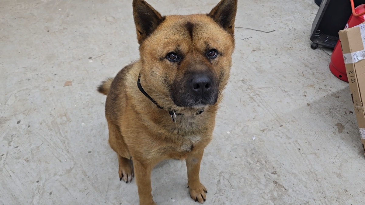 Сегодня ночью мороз -20°C. Решили отправить Пса Кубика ночевать в гараж, где держится температура +9°C.