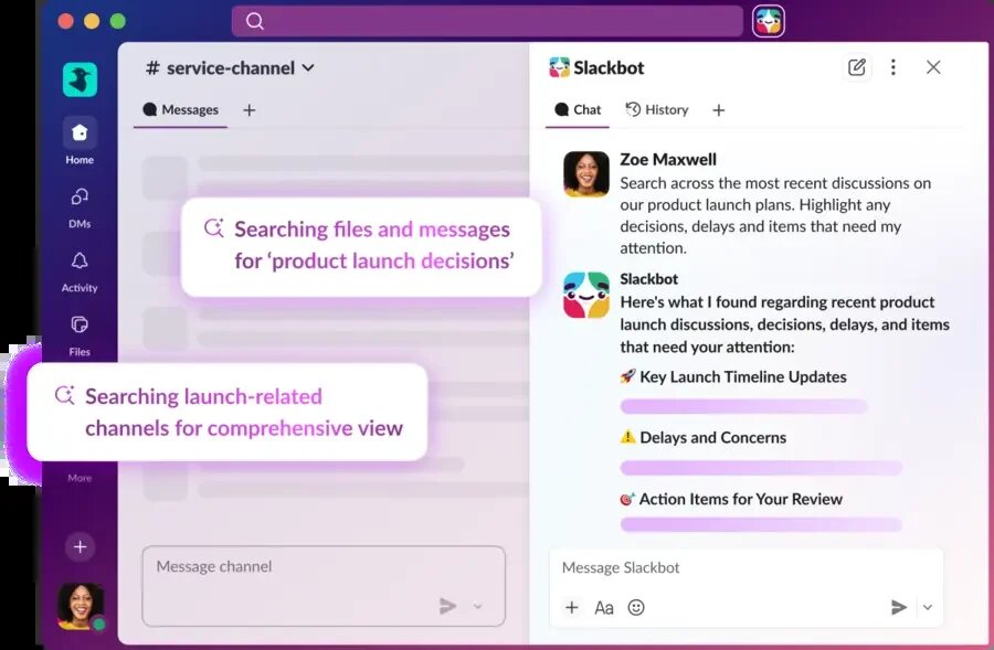 Salesforce представила Slackbot — нового ИИ-агента, который позволяет пользователям выполнять задачи в различных корпоративных приложениях прямо из Slack. Этот шаг знаменует собой активное внедрение генеративного ИИ в рабочие процессы. Гигант облачного программного обеспечения во вторник представил новую версию Slackbot. Эта обновленная версия Slackbot, основанная на искусственном интеллекте, которая уже доступна для клиентов с тарифами Business+ и Enterprise+, способна находить информацию, составлять черновики писем и планировать встречи, в том числе, работая исключительно в платформе Slack, как сообщает компания. Кроме того, с предоставлением соответствующего разрешения, она может подключаться и взаимодействовать с другими корпоративными продуктами, такими как Microsoft Teams и Google Drive, для поиска данных. Это позволяет пользователям работать с целым рядом распространенных корпоративных приложений, не покидая Slack. Salesforce и её конкуренты в сфере корпоративного ПО активно вкл