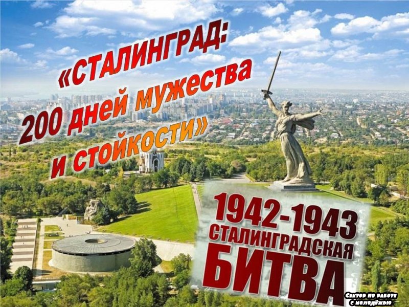 «Двести дней и ночей Сталинградской битвы» Методическая разработка, посвященная Сталинградской Победе «Двести дней и ночей Сталинградской битвы» Цель: расширять знания воспитанников об истории России, осознанию роли Сталинграда - Волгограда в период Великой Отечественной войны, в историческом развитии нашей Родины. Обучающие задачи: стимулировать стремление знакомиться с историей нашего края, города – героя Волгограда. Развивающие задачи: развивать в воспитанниках любознательность, внимание и познавательный интерес к истории родного края. Воспитательные задачи: воспитывать уважение, чувство гордости за героическое прошлое Родины, вызвать эмоционально-нравственный отклик на события Сталинградской битвы, укрепление духовно-нравственной связи между людьми разных поколений. Методы и приёмы: художественное слово, рассматривание слайдов на экране, прослушивание музыкального произведения. Материалы и оборудование: мультимедийный проектор, экран. Предварительная работа: беседа о предсто