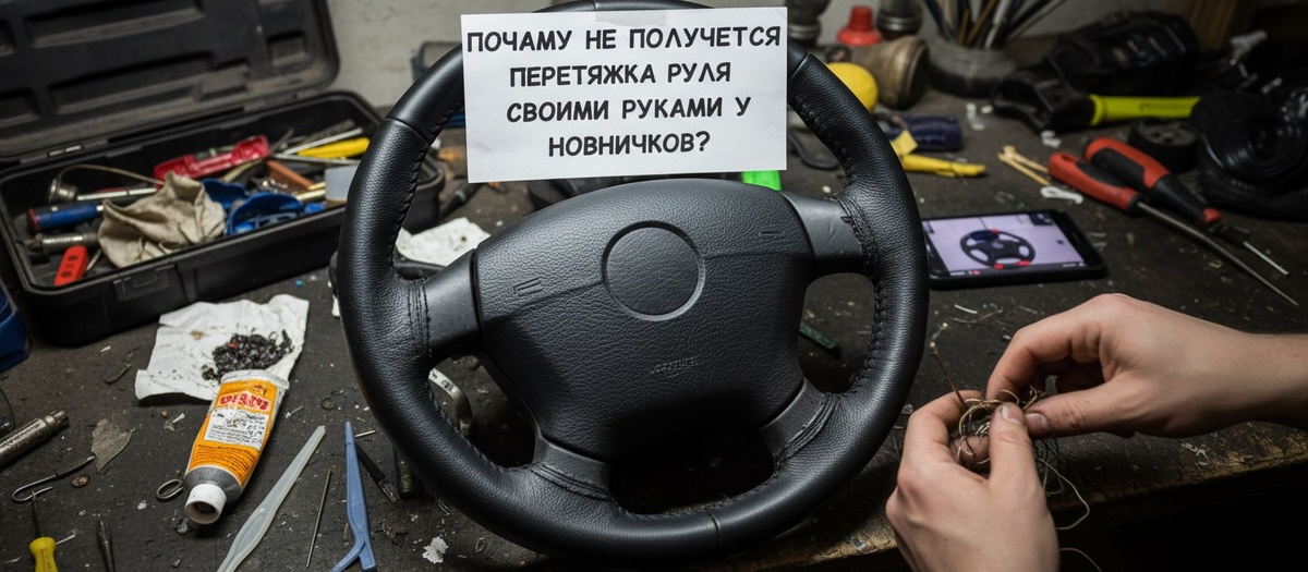 Перетяжка руля кажется простой, но для новичков превращается в кошмар из пузырей, кривых швов — руль выглядит кустарно, а время и деньги