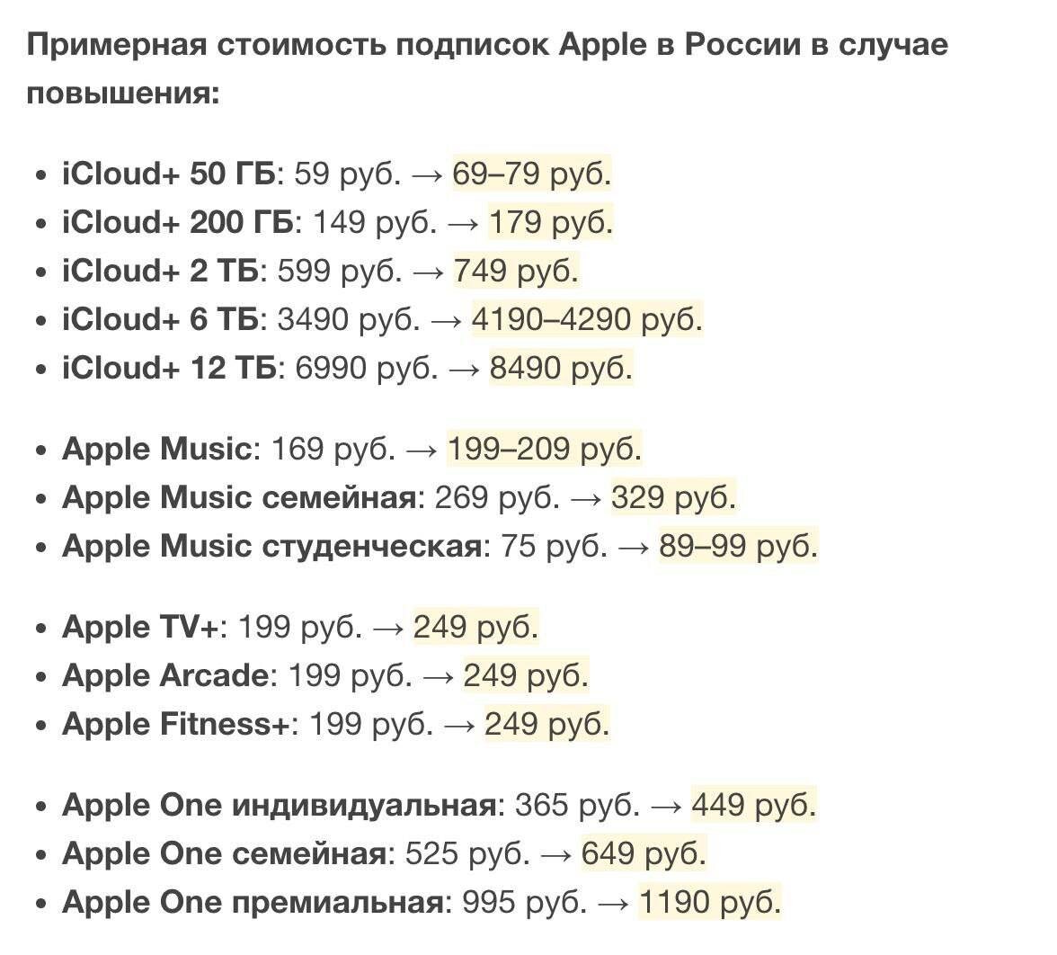 Apple объявила о скором повышении стоимости всех основных подписок. Изменения затронут следующие сервисы: • iCloud • Apple Music • Apple TV+ • Apple Arcade • Apple Fitness+ • пакеты Apple One Повышение цен ожидается в ближайшие месяцы. Все подписчики столкнутся с увеличением расходов. https://dzen.ru/id/5c0e38ff46ef5c00aaa80527