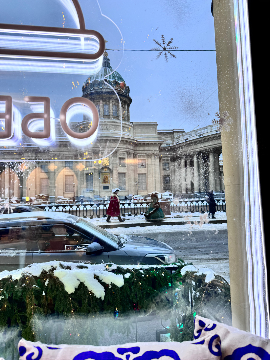 Отличное место для вкусного завтрака с видом на Казанский собор.