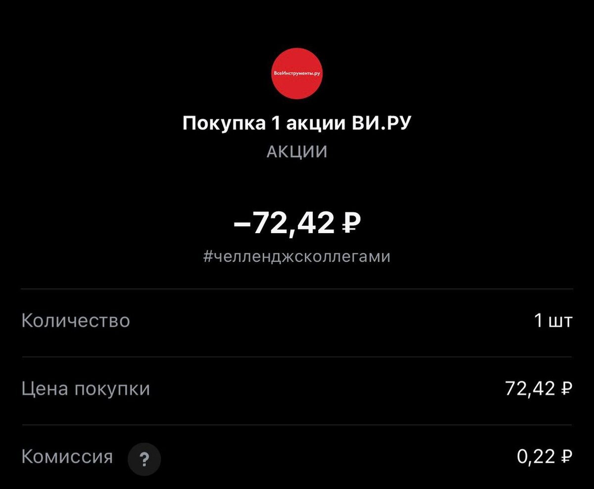 Статистика портфеля на стороннем сервисе, можно посмотреть по "ссылке" Напомню это челлендж с коллегами, каждый рабочий день пополняем брокерский счет на 250 рублей и инвестируем. Если возникли вопросы или есть не понимание, что делать. Задавайте «тут» Покупка #345 🟢 «ВИ.РУ» 72.42 rub #VSEH 1 лот #каждыйсможет #челенджсколлегами ✈️ Стас Мироненко