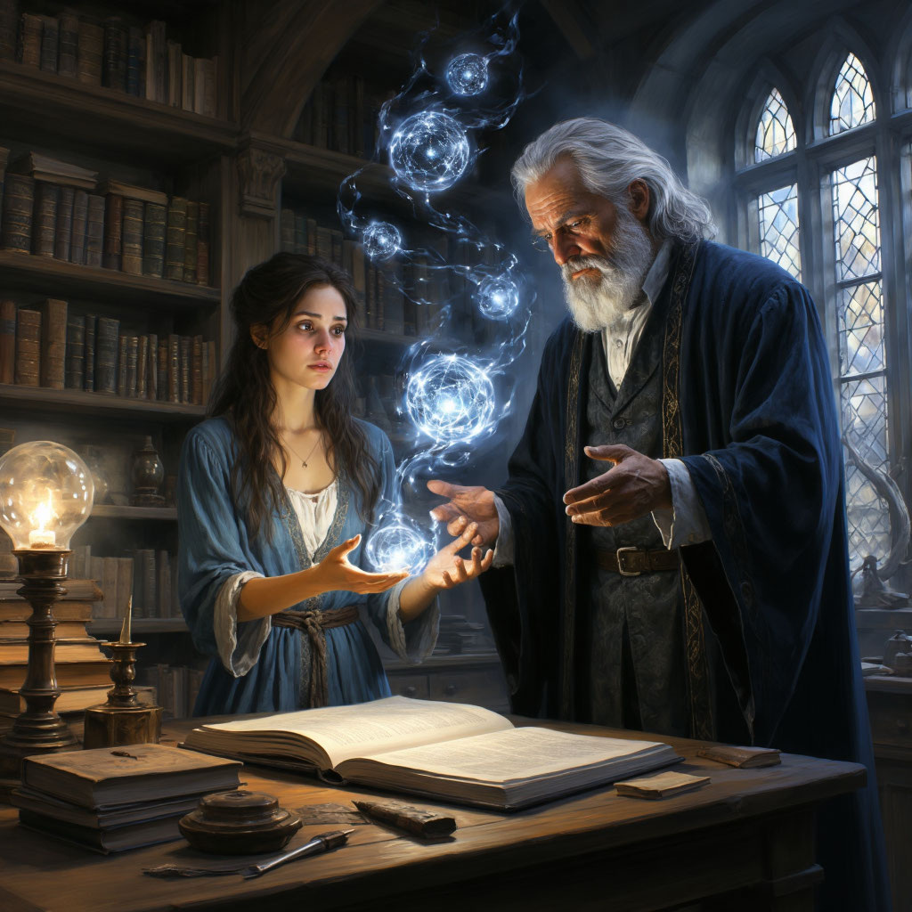 Маг медленно поднял руки. Они не были ни старыми, ни молодыми — просто руками, инструментами древней воли. Он начал плавно двигать ими перед её лицом, слева направо, рисуя в воздухе невидимые символы. Его пальцы оставляли за собой едва уловимые серебристые следы, таявшие в воздухе, как дым от ладана.
