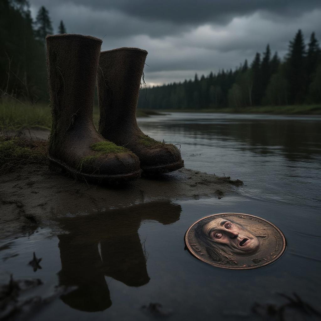 На крючке болталась не рыба. Это был старый, замшелый, почти сгнивший валенок. Из его голенища свешивались тинки водорослей. Сергей почувствовал, как волосы на затылке зашевелились. Деревенская примета всплыла в памяти сама собой: «Водяной удочку запутал — к беде. Подарок его вытащил — к смерти». Он нервно сорвал валенок с крючка, чтобы швырнуть его обратно в воду. Но в последний момент заметил в складках гнили что-то блеснувшее. Это была старая медная монета, царская ещё, въевшаяся в войлок. Суеверный ужас сменился азартом кладоискателя. Он сунул монету в карман, валенок — в кусты, и, сплёвывая через левое плечо, поспешил уйти с этого места. По дороге домой его настигла гроза.