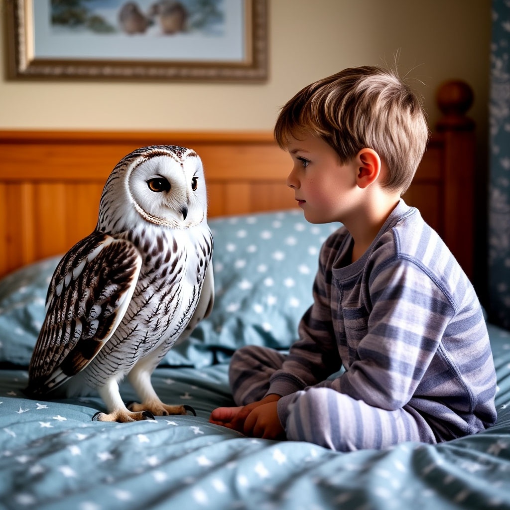 “Уху-уху” - вдруг послышалось над головой. Сенька повернулся и заметил пушистого совёнка, устроившегося на металлическом шарике, венчавшего изголовье кровати. Совёнок был такой славный, что очень хотелось его потрогать, но мама всегда говорила, что диких птиц и животных лучше не касаться, поэтому Сенька лишь спросил: “Кто ты? И откуда?” Совёнок встрепенулся словно обрадовался, что его наконец заметили и уже открыл клюв, чтобы что-то сказать. Но будто вспомнив, что он птица важная и должен быть страшным и загадочным, с таинственным видом выдержал паузу и заговорил человеческим голосом: “Уху... Я повелитель ночного леса, я гроза мышей и змей, я ужас, летящий на крыльях ночи” Сенька прыснул от смеха, потому что последнюю фразу он совсем недавно слышал в мультике, но тут же замолчал под строгим взглядом совёнка. Тот уже приготовился продолжать свою явно тщательно подготовленную речь, но вдруг, - “Хррррр-хррррр”, - раздался громкий храп дедушки. “Ну что ж это такое, перья тебе в ноздри! Готовишься, готовишься, а тебе даже сказать не дают, то смеются, то храпят!”, - совёнок явно сильно расстроился и демонстративно отвернулся к стене. Сенька помолчал секунд пять и сказал: “Вы меня извините, и дедушку тоже, он когда крепко заснёт всегда храпит громко! Продолжайте пожалуйста я не буду больше смеяться” Совёнок повернул голову на 180 градусов и не разворачивая головы продолжил “Я тот, кто по ночам крадёт ваш покой”, тут его глаза стали настолько большими и круглыми, перья распушились, клюв приоткрылся и он призвав весь свой талант изобразил грозного лесного охотника. “Хрррр-хрррр”, - ещё громче захрапел дедушка. “Нет ну это невозможно, чтоб тебе дятел весь день спать не давал!”, чуть не расплакался совёнок.