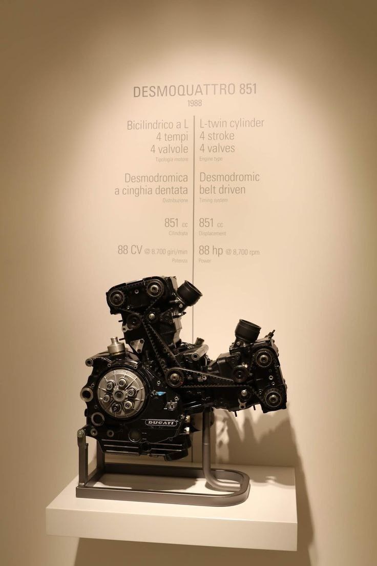 Двигатель Ducati 851 Desmoquattro 1988 года выпуска выставлен в музее Ducati в Болонье, Италия.