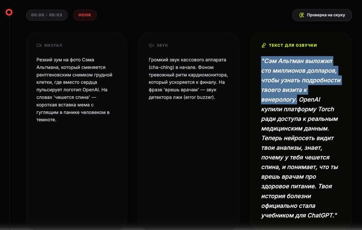 сделал себе генератор скриптов для рилсов😄