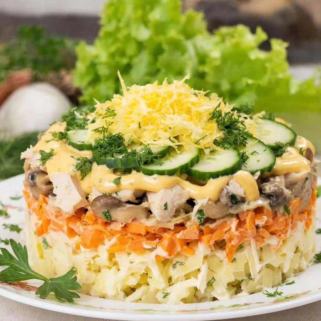 Салат «Грибная поляна» — это вкусное блюдо, которое станет украшением праздничного стола. Вот простой рецепт приготовления: