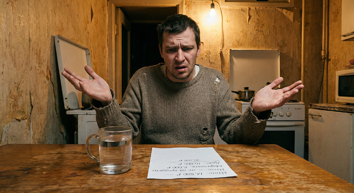 И, не разуваясь толком, прет на кухню. Садится за стол, берет хлеб.