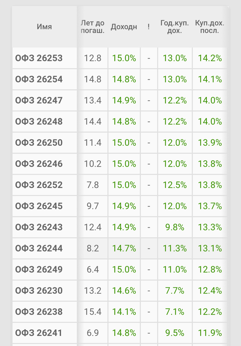% На фоне падения котировок ОФЗ их доходность выросла до 15% годовых. Я выбираю выпуски сочетающие максимальный купон и доходность. Поэтому отдаю предпочтение ОФЗ 26253, а вы? Докупил на ИИС по 91,7%. #ОФЗ