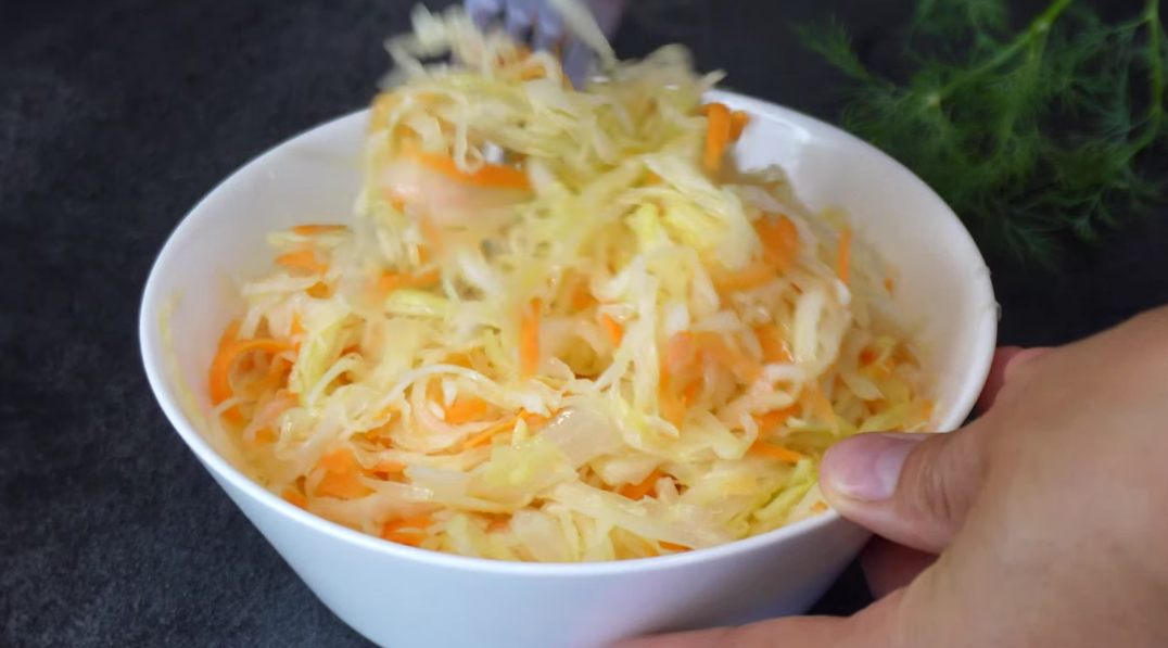 Простой рецепт, который всегда под рукой. Есть блюда, которые не претендуют на звание праздничных, но становятся незаменимыми в повседневной жизни. Они не требуют долгой готовки, их всегда можно быстро сделать, а в холодильнике они хранятся несколько дней, оставаясь свежими. Именно таким для меня стал этот салат из капусты. Он настолько простой и удачный, что теперь у меня есть почти всегда. Его можно подать как дополнение к любому основному блюду, использовать как начинку для пирожков или просто съесть тарелку на ужин. И главное его качество — приятный хруст, который сохраняется даже через день. Капусту нашинкуем соломкой. Добавляем соль, на 800 грамм нашинкованной капусты, я добавляю 1,5 ч. л. соли 2 ст. л 9% уксуса. Перемешиваем. Теперь выкладываем капусту в глубокую сковороду или сотейник и прогреваем на минимальном огне. ❗Главное — не перегреть: она должна стать лишь слегка тёплой, а не горячей. Проверить