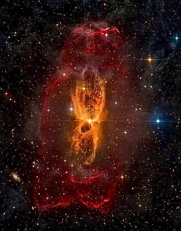 ✨ Её обнаружили относительно недавно, в 1908 году и это при том, что структура довольно крупная — её длина 1,3 светового года, а форма очень ровная и симметричная, будто два одинаковых крыла. В самом сердце туманности светит стареющая звезда-гигант HR 3126, которая активно сбрасывает свои внешние оболочки. Учёные считают, что такая идеальная симметрия туманности возможна благодаря второй звезде расположенной поблизости от гиганта. Она-то и "приводит в порядок" выбрасываемое вещество, формируя два аккуратных противоположных потока. Находится вся эта красота на расстоянии около 1200 световых лет от Земли. Спокойной ночи, земляне! «Щукин и всё»