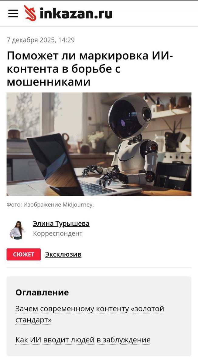 Когда скорость публикации информации ставится важнее ее качества, мы неизбежно сталкиваемся с проблемой распространения недостоверных данных, которые «помог» собрать ИИ. Об одном из показательных случаев из собственной практики рассказывает CRM-интегратор Зуфар Тагиров. Цифровая платформа «Битрикс24» провела презентацию обновления, в которой было много специальных терминов и медийных материалов. Они понятны только узким специалистам и ранее публично не презентовались, а всем известно, что искусственный интеллект не способен корректно интерпретировать представленную информацию без контекста. «Некоторые контентмейкеры в погоне за срочностью публикации горячих новинок вместо того, чтобы выпустить авторский конспект презентации, решили упростить себе задачу. Они сделали автоматическую транскрибацию речи спикеров и попросили написать обзор новинок», — говорит Тагиров. В результате у некоторых слабых моделей ИИ выводы получились неверные: например, что новинки уже выпущены — хотя они буд