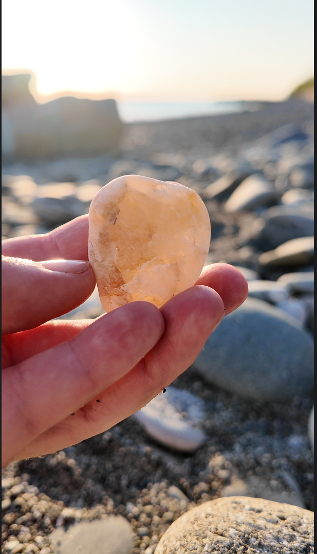 Общаемся в телеграме, делимся фото находок. Посмотрите, халцедон это - как раз засветился в лучах заходящего солнца. Видите, солнце попало на него, и вот он светится.