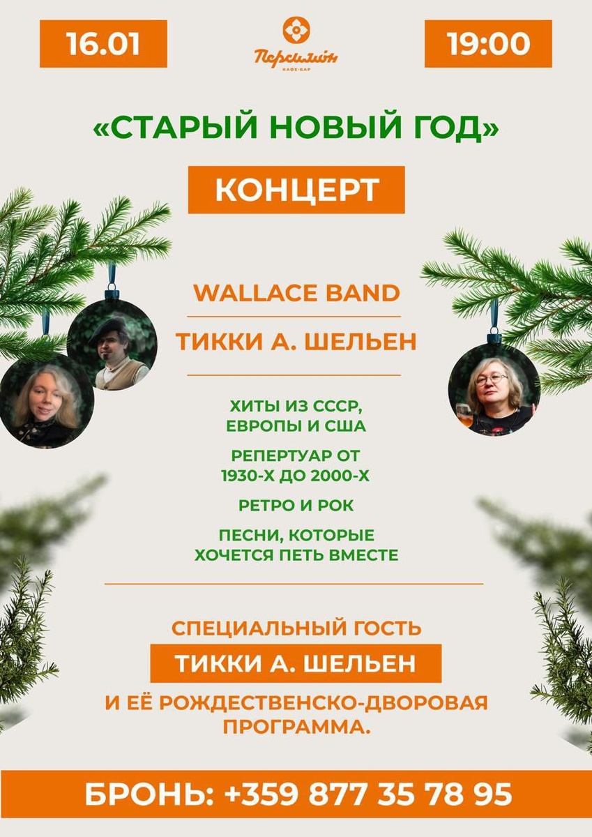 ! Для тех, кому мало. Для тех, кто хотел бы еще чуть-чуть. Для тех, к кому Санта не подъехал вовремя или подъехал на хмуром олене. Для тех, кто хотел бы понадежнее проводить старый год и пульнуть Змеюке-2025 контрольный в голову! ПРИХОДИТЕ в кафе «Персимон» на концерт "Старый новый год" Что будет: *Хиты из СССР, Европы и США *Музыка от 1930-х до 2000-х годов *Ретро и рок в живом исполнении *Песни на разных языках, которые хочется петь вместе. Если вы не умеете, но хотите, петь МОЖНО! И даже НУЖНО! Специальный гость - Тикки А. Шельен и ее рождественско-дворовая программа. Вход: 👶 дети до 16 лет — бесплатно 🧑 взрослые — донат (рекомендуемый взнос от 10 €) Отпразднуйте Старый Новый год на совесть: музыкально, вкусно, без комплексов и забот — ждём вас в кафе «Персимон»! 🥂🎄 Шляпа будет стоять отдельно! Бронирование столика: +359877357895 Адрес: Варна, ул Мирон Игнатиев, 11