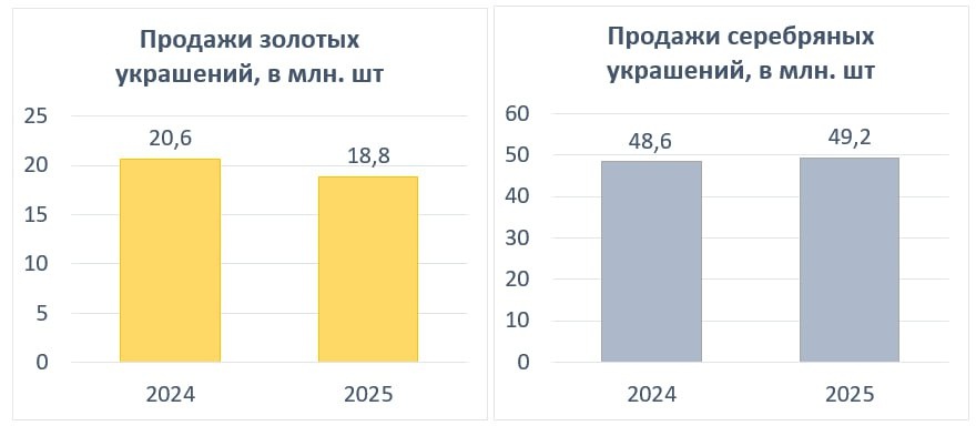По итогам 2025 года продажи ювелирных изделий из золота снизились на 8,7%, следует их данных регулятора