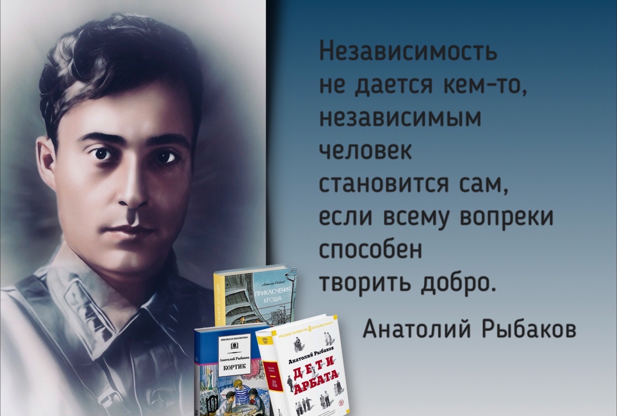 Анатолий Рыбаков всю жизнь писал историю – историю своего поколения. Его ровесники с энтузиазмом строили светлое будущее и свято верили в него, многие прошли горнило лагерей и ссылок, сражались на фронтах Великой Отечественной. Он и сам был не сторонним наблюдателем, стоящим на берегу этого мощного потока: окончил московскую опытно-показательную школу-коммуну, работал на Дорогомиловском химзаводе грузчиком.