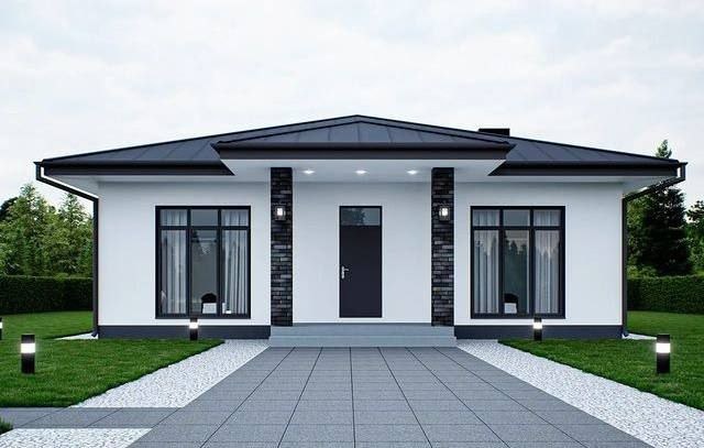 Проект одноэтажного дома с 2 спальнями, отдельной гостиной, кухней столовой, санузлом и котельной