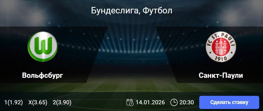 «Санкт-Паули» по-прежнему испытывает сложности с результативностью, однако в последних турах просматривается прогресс. Подопечные Александера Блессина сумели поразить ворота соперников в трех из четырех предыдущих матчей чемпионата. В гостевых встречах с «Вольфсбургом» «пираты» традиционно действуют удачно, забивая в обоих очных поединках в рамках Бундеслиги. При этом оборона команды из Гамбурга остается уязвимой: лишь в 15-м туре удалось прервать серию из 12 матчей с пропущенными мячами, сыграв вничью с аутсайдером «Майнцем». С учетом турнирной мотивации хозяев и проблем в защитных линиях обеих сторон, сценарий с голами в обе стороны выглядит весьма вероятным. 🎯 Обе забьют (Да) 🎲 кф (1.75) 👉 СДЕЛАТЬ СТАВКУ 🎁 ФРИБЕТ WINLINE - 3000₽ (промокод: BETWIN) 👉 СМОТРЕТЬ ПРОГНОЗ 👇 Подпишись на нас 🧿 ВКонтакте ✈️ Телеграм 📎 Сайт