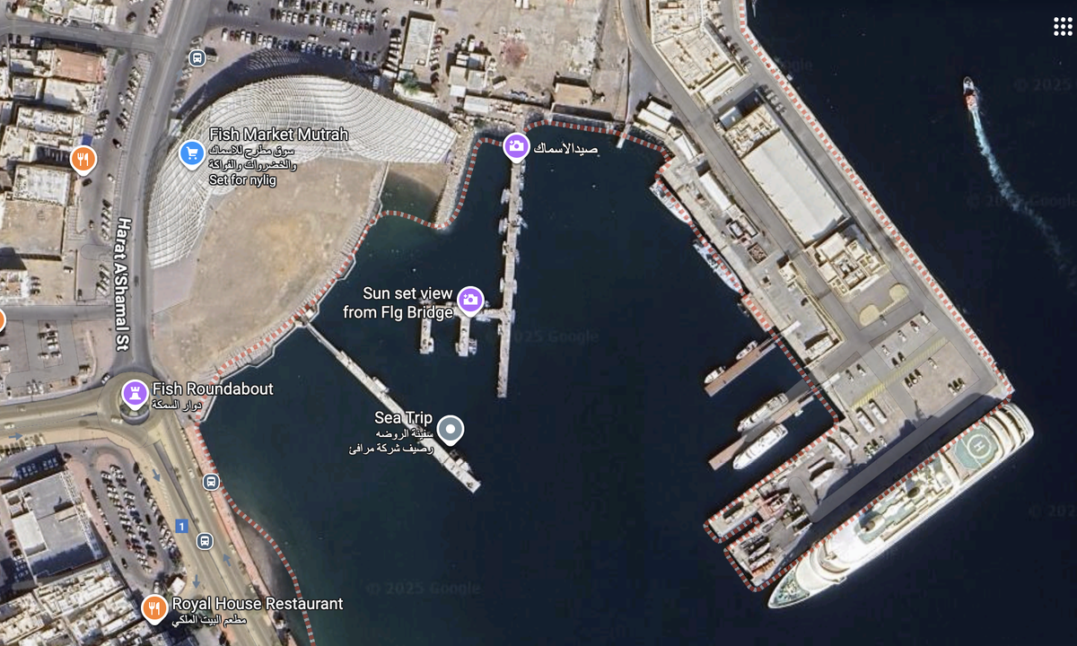 Его отмечают, как достопримечательность, водят туда экскурсии. Хотите посмотреть, стоит ли он того? Он находится в районе Матрах, прямо в гавани. Если посмотреть на здание рынка сверху, то он напоминает остов огромного морского животного: Это- творение норвежского бюро Snøhetta, поэтому стиль очень напоминает скандинавский - минималистичность и объем. Главный визуальный элемент – динамичный навес‑козырёк из алюминиевых «ламелей», который тянется над наружными проходами и террасами. Форма навеса вдохновлена арабской каллиграфией и силуэтами рыбьего скелета; ламели создают игру света и тени, обеспечивая тень, вентиляцию и узнаваемый силуэт здания. Внутри же этот рынок похож на любой другой - длинные ряды с прилавками. Я пришла поздно, прилавки были уже полупустые: Продавцы, видимо, привыкли к нашествию туристов, и на камеру ни кто не обращал внимания, так что фотографировать можно было свободно. Я поискала знакомые види рыб. Угадала тунца: Люди не только покупают, но и общаются: