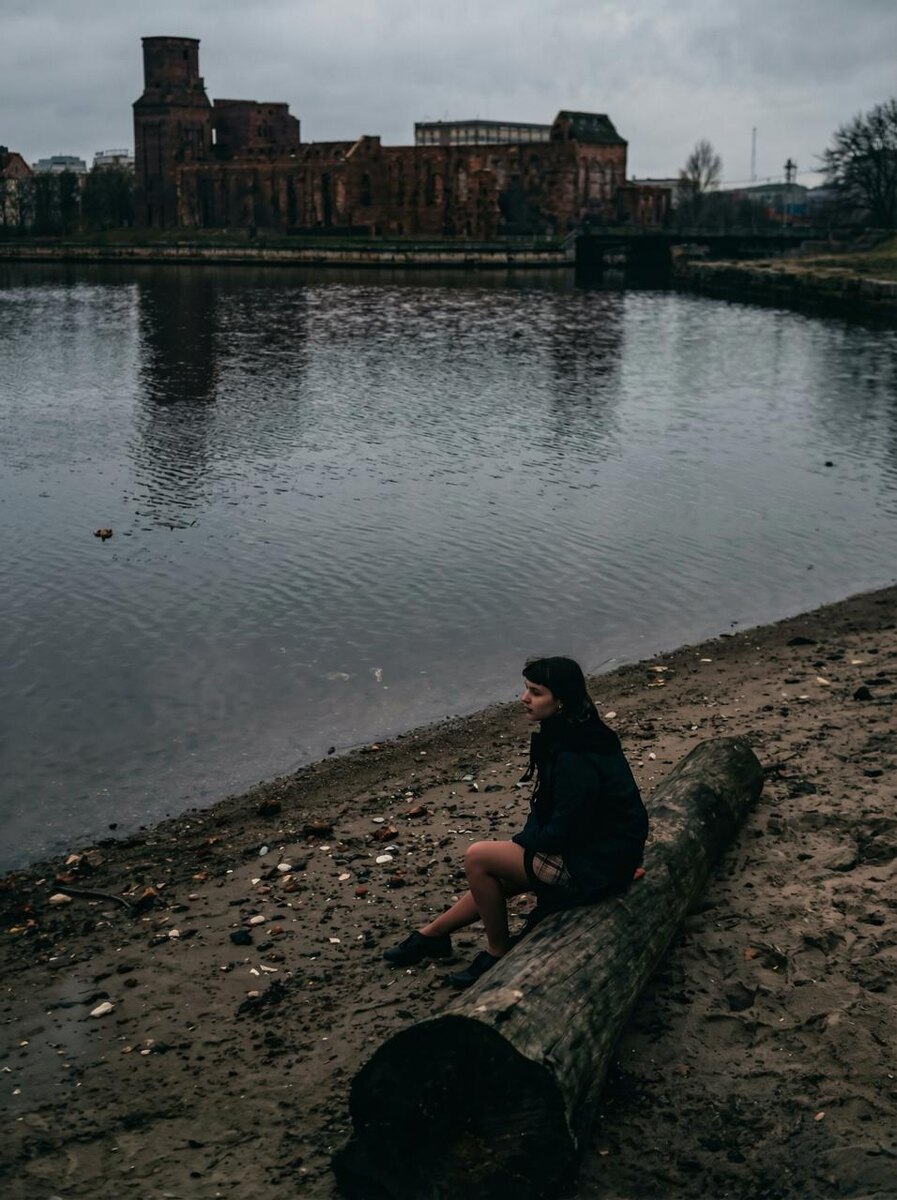 Берег реки на котором сидит девушка и есть Рыбная деревня. Такой она была до 2006 года - до начала активного благоустройства. Пустыри, сады, гаражи. Вдалеке виднеется Кафедральный собор, его тоже восстанавливали калининградцы. Комплекс «Рыбная деревня» был построен в 2010 году, от проекта до его реализации ушло 4 года. Комплекс возник с целью благоустройства территории на берегу реки Преголя, где при немцах были рыбацкие поселения и рыбный рынок, чтобы вернуть городу утраченный исторический облик. Здания стилизованы под старый Кёнигсберг, с характерными элементами, фонарями и фасадами, создают атмосферу средневековой Европы. Рыбная деревня - самая фотографируемая достопричесательность Калининграда. Башни, замки и красочные кварталы – все это радует глаз и вызывает восторг.