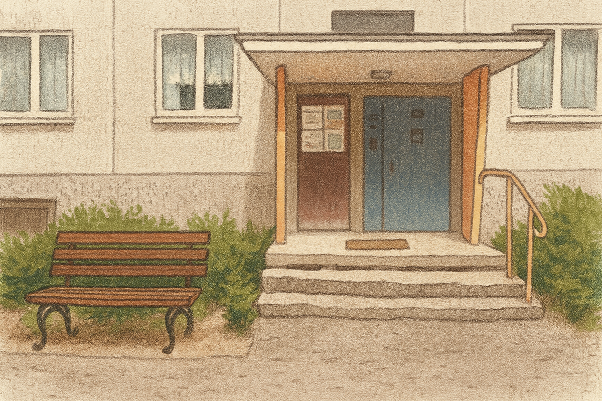 Здесь разговаривают позами, паузами, короткими взглядами. Каждый вечер выходит женщина из второго подъезда.