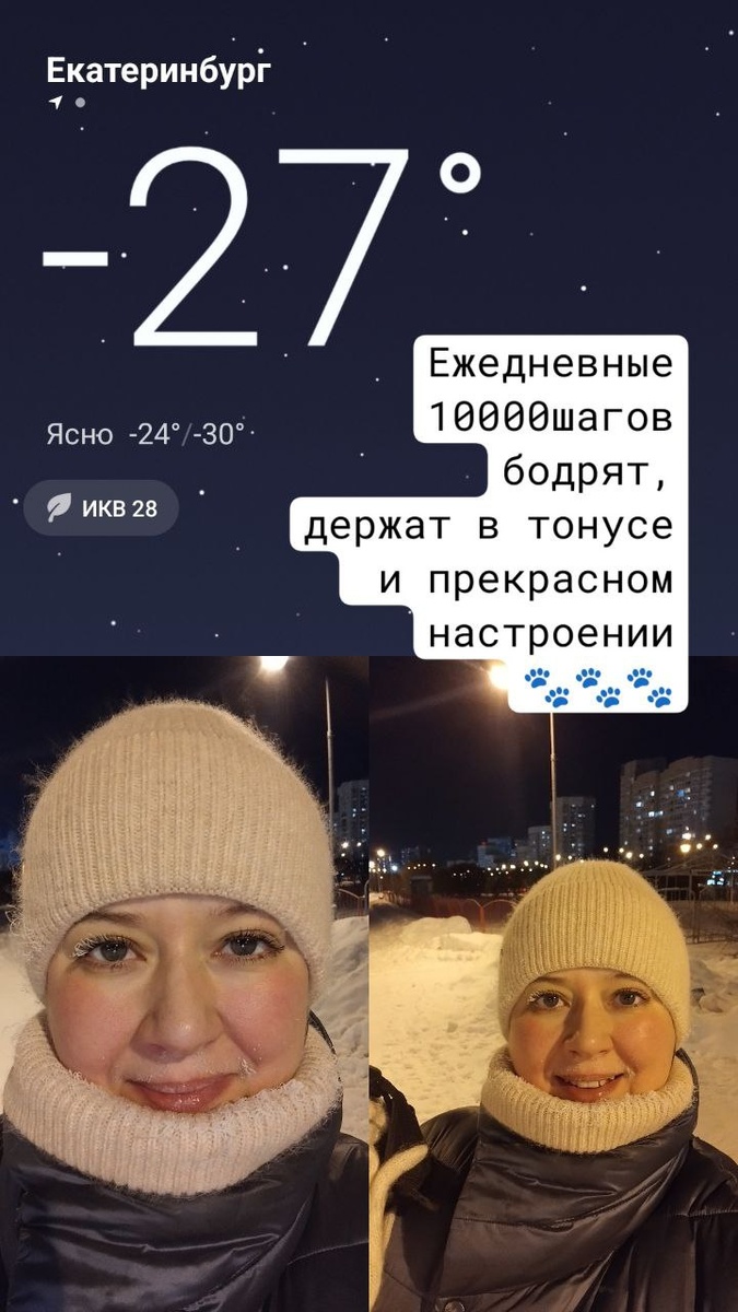 10000шагов в минус 27 бодрят и даже не холодно