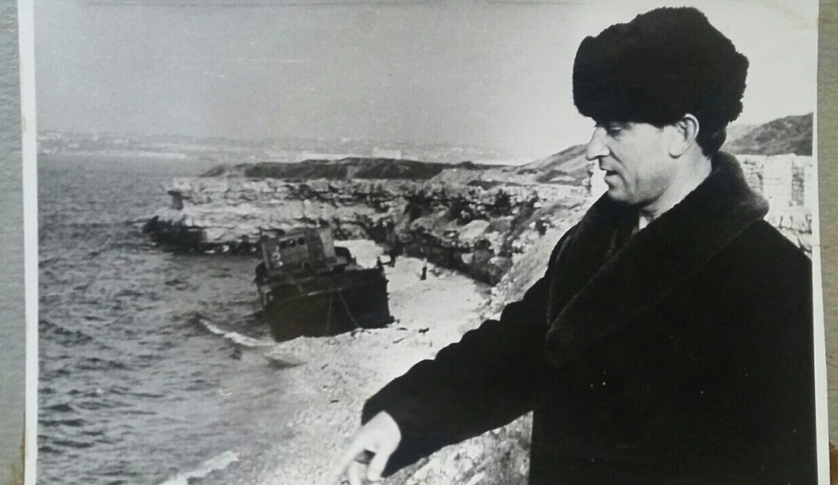 ПРО ФОТО: дядя Витя (Виталий), муж маминой сестры (Надежда и Евдокия) на фоне достопримечательности на пляже Музея-заповедника "Херсонес Таврический", корабля, который туда выбросило, февраль 1974-го, мама с первенцем Вовой лежит в роддоме (15 февраля родила), вот её мама, наша бабушка (тоже Евдокия) приехала с мужем другой своей дочери в Севастополь из Винницкой области помогать маме в необычных для неё заботах, сама четверых родила и вырастила, обо всём этом писали в подробностях под соответствующими фотографиями
