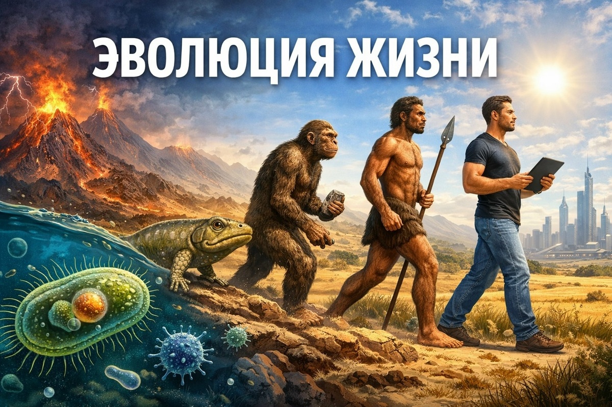 Если оглянуться назад на весь путь, который прошла жизнь на нашей планете, невозможно не почувствовать величие и хрупкость эволюции. От первых молекул, скользящих в древнем океане, до сложных клеток, от многоклеточных организмов до камбрийского взрыва — жизнь всегда находила способы усложняться, адаптироваться, пробиваться сквозь трудности. Каждый шаг эволюции — это не скачок по воле случайности, а результат сложной цепочки взаимодействий: между химией и физикой, генами и средой, индивидуальными организмами и их популяциями. Симбиоз вместо скачка, постепенное накопление изменений, миллионы лет крошечных адаптаций — и вот перед нами сложный организм, способный мыслить, любить, создавать культуру и технологии. Современный человек — не финал, а очередная ветвь на древнем дереве жизни. Мы не венец эволюции, мы — лишь один из её многочисленных экспериментов, один из тех узлов, где биология переплелась с сознанием. Наш интеллект и культура — продолжение той же самой силы, что привела к фотосинтезу, к многоклеточности, к появлению глаз и мозга.