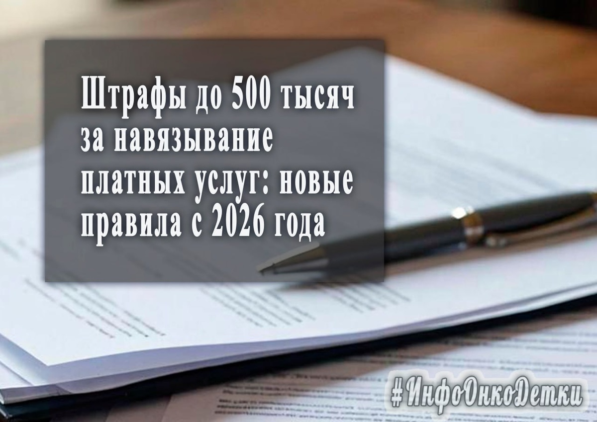 С 9 января 2026 года в России существенно ужесточается ответственность за навязывание потребителям дополнительных товаров и услуг за отдельную плату. Эти изменения напрямую касаются и сферы здравоохранения. 📃 ФЗ от 29.12.2025 № 561-ФЗ "О внесении изменений в статьи 3.5 и 14.8 Кодекса Российской Федерации об административных правонарушениях" В чем суть изменений? Нередко в медорганизациях пациентам пытаются предложить платные услуги в дополнение к тем, что уже положены им бесплатно по полису ОМС. Теперь за подобные действия клиникам грозят серьезные административные штрафы. Размеры штрафов (согласно поправкам в КоАП РФ): Согласно новому закону, за навязывание «допов» придется заплатить: ▪️Должностным лицам (например, главврачам или администраторам): от 50 000 до 150 000 рублей. ▪️Организациям (юридическим лицам): от 200 000 до 500 000 рублей. Медицина под особым контролем Закон защищает пациентов от ситуаций, когда: • Вас заставляют платить за анализы или обследования, которые вхо
