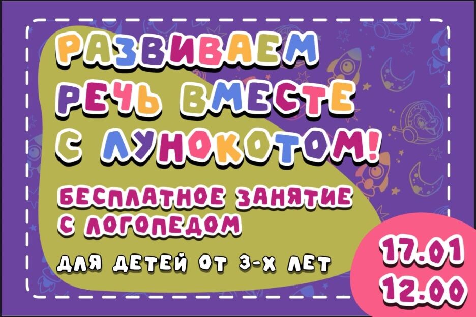 Реклама ООО «ЛУНОКОТ» ИНН:7735212117 erid:2VtzqwdadtN Подарок для маленьких гостей — бесплатное логопедическое занятие «Фокус-покус: задуй страх, вдохни радость!» 17 января,12:00 Парк развлечений «Лунный кот» •Для детей от 3 лет •Бесплатно при покупке входного билета •Количество мест ограничено — рекомендация: предварительно записаться! Что ждёт ребёнка? В программе: Польза + развлечение = идеальный выходной в «Лунном коте»! Подарите ребёнку радость и пользу одновременно! Написать в Telegram