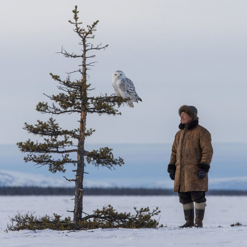 - Каждый вечер Арчын выходил из своего чума, чтобы понаблюдать за звёздами и послушать тишину тундры. Однажды в морозную ночь он заметил на ветке лиственницы ослепительно белую птицу. Это была полярна сова — мудрая, словно хранительница северных тайн.