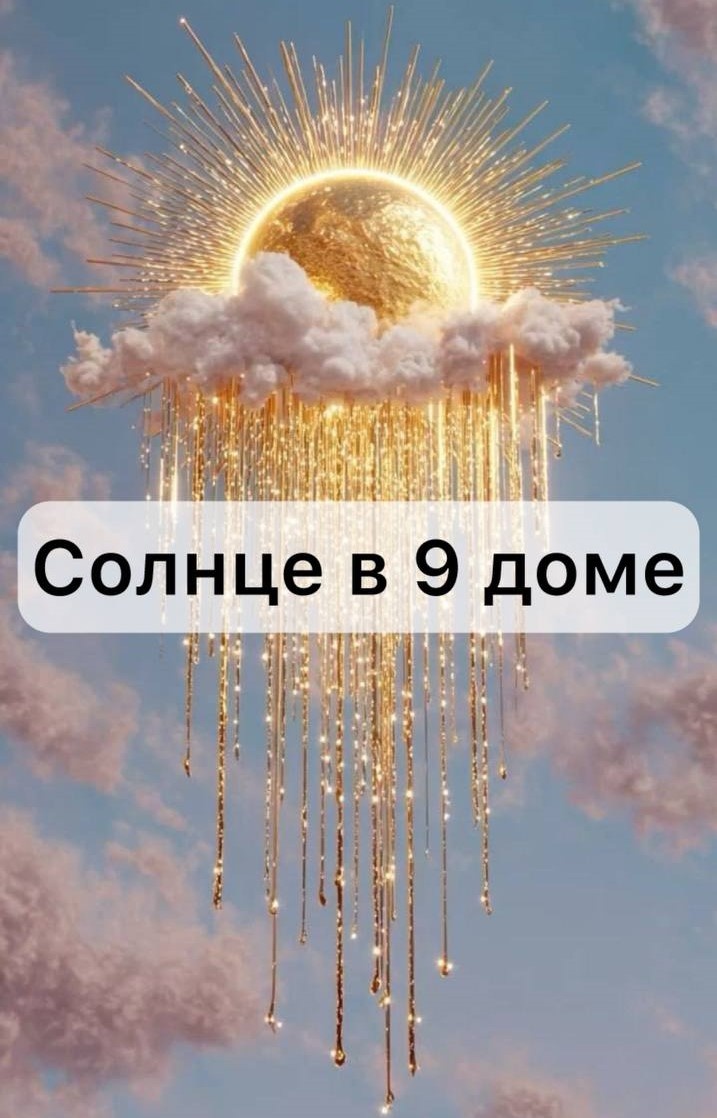В натальной карте 9-й дом - это Дом высшего разума, мировоззрения, философии, дальних странствий и духовных исканий. Он символизирует всё, что расширяет границы сознания за пределы личного опыта: высшее образование, религия, закон, этика, иностранные культуры, дальние путешествия, поиск жизненного смысла. Это сфера, где ум стремится к синтезу, а душа - к вере. Когда в этом доме восходит Солнце - светило, олицетворяющее самость, волю и творческий дух, - личность обретает свою миссию в поиске и утверждении всеобъемлющих истин. Его «Я» сияет не в мелочах будней, а в стремлении к горизонту, в создании собственной философии жизни.