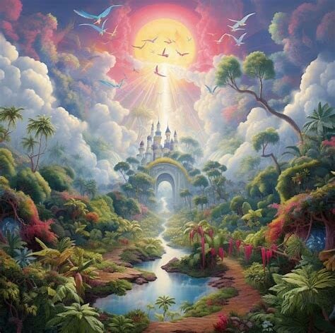 · В исламе: Рай (Джаннат) описан в Коране очень подробно и чувственно. Это, прежде всего, место высших наслаждений, данных в награду. Прекрасные сады, под которыми текут реки, роскошные одеяния, драгоценности, изысканная еда и питьё. Одним из главных благ для праведников-мужчин называются гурии — прекрасные, чистые супруги. Эти описания призваны показать абсолютную полноту и совершенство всех радостей, которых верующий был лишён в земной жизни, преодолевая испытания. Главное — наслаждение благами от Аллаха. Непосредственное лицезрение Аллаха (ли-ль-лях) иногда упоминается как высшая милость для обитателей рая, но это не центральная и не всегда однозначная тема.