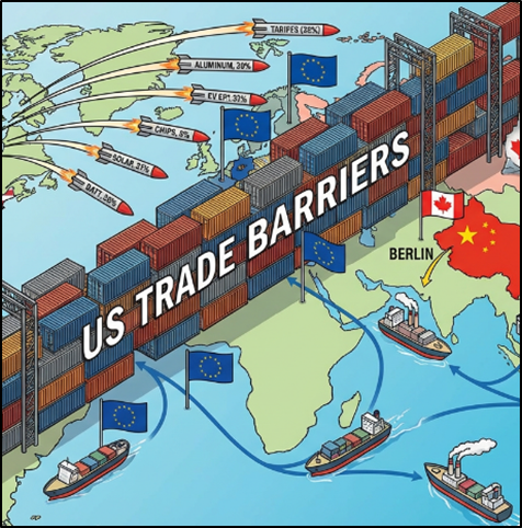 Вашингтон последовательно использует тарифы и экспортные ограничения как инструмент геополитической политики. Эти меры всё чаще затрагивают интересы ближайших партнёров США - Евросоюза, Канады, Японии, Республики Корея и Великобритании. Стальные и алюминиевые пошлины в размере 25 % и 10 %, введённые ещё в 2018 году, вопреки ожиданиям не были отменены администрацией Байдена. В 2023–2025 годах к ним добавились стопроцентные тарифы на китайские электромобили, 50 % на полупроводники и солнечные панели, 25 % на литий-ионные аккумуляторы. Хотя формально меры направлены против КНР, их действие распространяется на продукцию, произведённую компаниями из союзных стран на территории Китая или с использованием китайских компонентов. Процесс идёт без громких заявлений и разрыва союзов. Он выражается в тихом, но системном перенаправлении инвестиций, заключении новых торговых соглашений и создании параллельных технологических цепочек. Когда эти структуры окончательно заработают, США рискуют обнаружит
