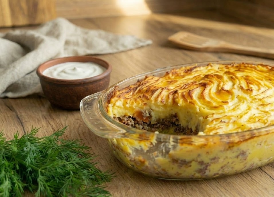 Картофельная запеканка с мясным фаршем "как в детстве": секрет сочности и румяной корочки.