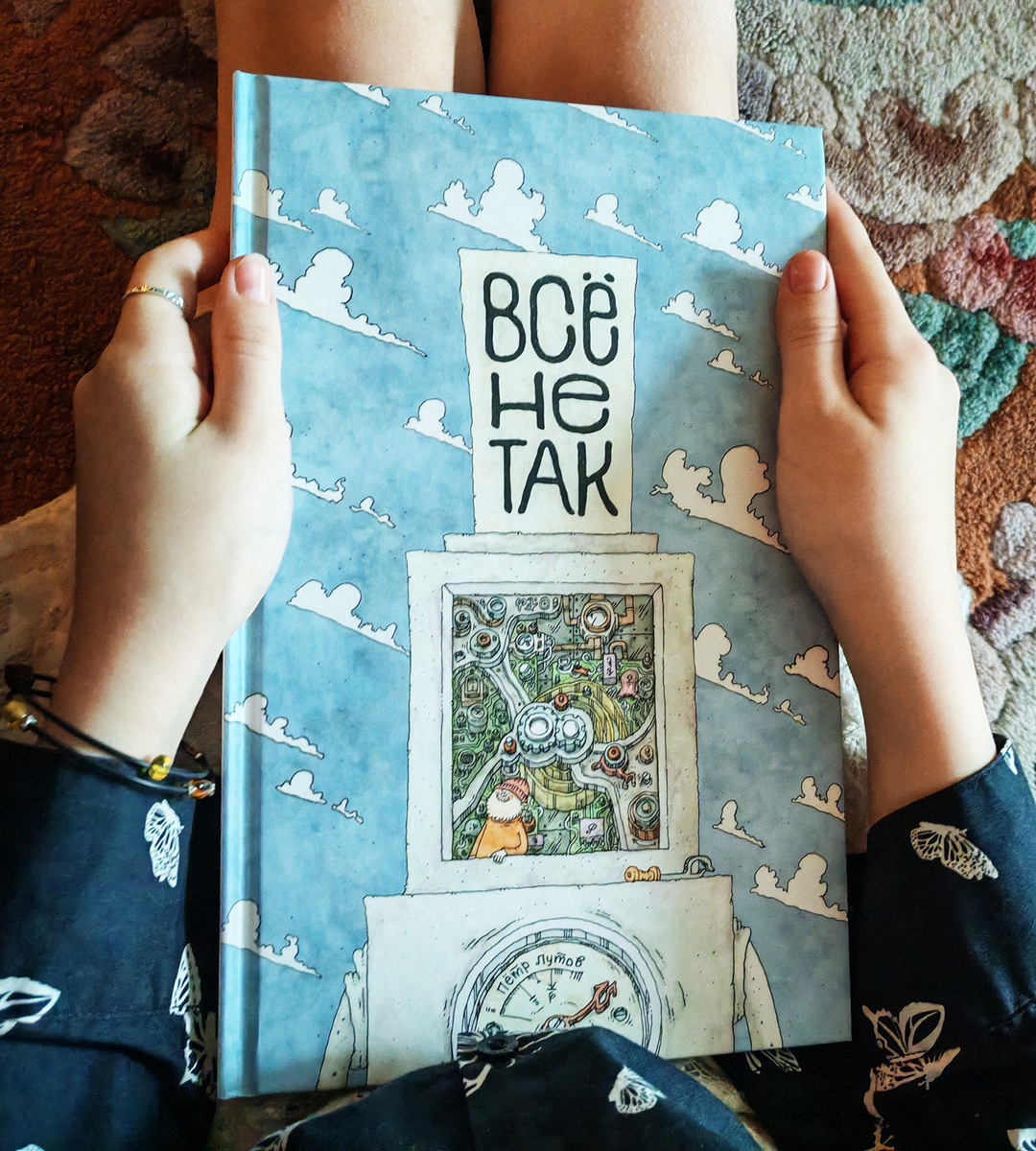Контроллер, поршень, сальник, коленчатый вал, левый щуп, правый щуп, колпачок, а еще… чистильщик контактов, инженер-электрик, смотритель, оператор, техник и, конечно, завхоз, секретарь, директор и стажер. Неожиданно?! А знаете почему? Потому что «Все не так»! И это новая книга Петра Лутова, вышедшая в издательстве «Поляндрия». Ее полное название «Все не так. О принципах работы и внутреннем устройстве бытовых приборов». Это уже вторая книга, первая была книжка-раскладушка а-ля виммельбух «Автозавод». «Все не так» в какой-то степени тоже можно назвать виммельбухом: иллюстрированная книга, где много-много всевозможных деталей, элементов и персонажей, которых можно находить, изучать и придумывать про них истории. «Все именно так»! В книге «Все не так. О принципах работы и внутреннем устройстве бытовых приборов» Петр Лутов препарирует 26 бытовых приборов: от замка в двери и настольного вентилятора до холодильника, индукционной плиты и телевизора. Только не ждите технической точности! Это не