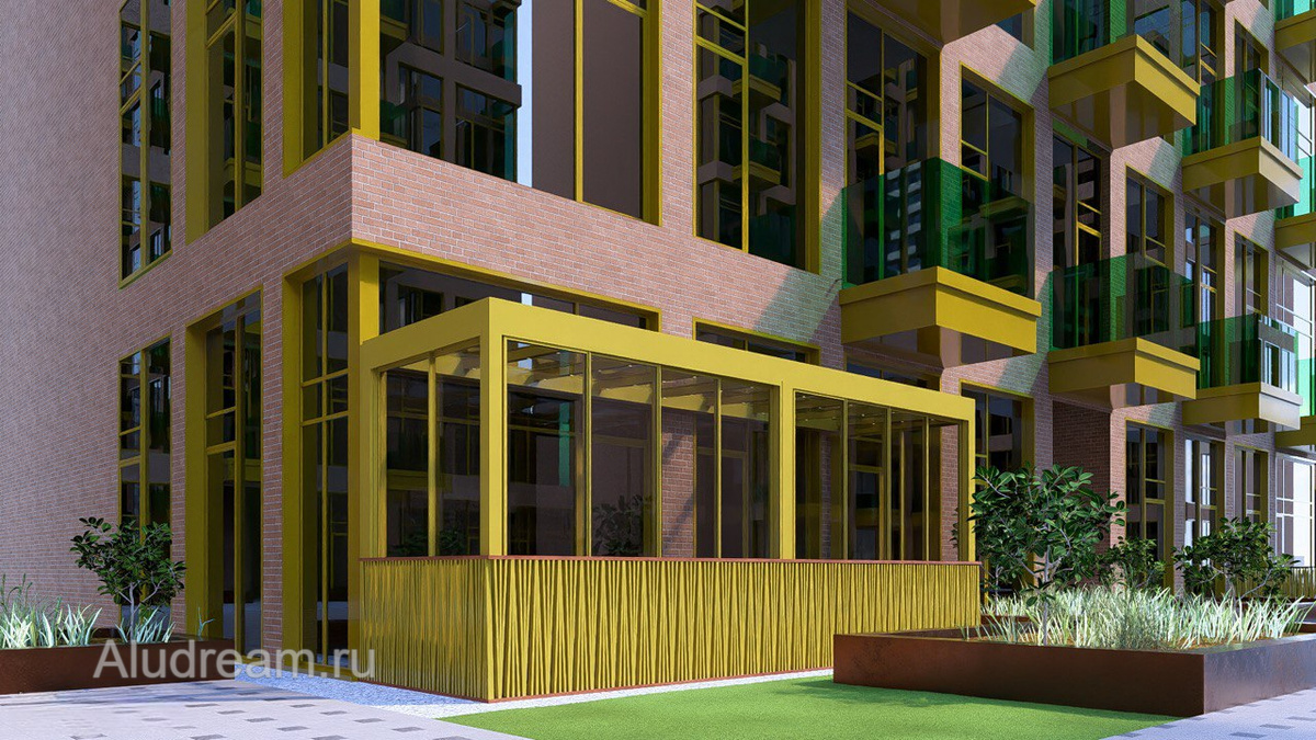 Снаружи — аккуратные клумбы, травы, кустарники. Как будто вы перенесли кусочек ботанического сада прямо к себе под окна. А ещё — максимум естественного света, свежий воздух и полное ощущение свободы. Даже в центре мегаполиса. Когда стемнеет, прос