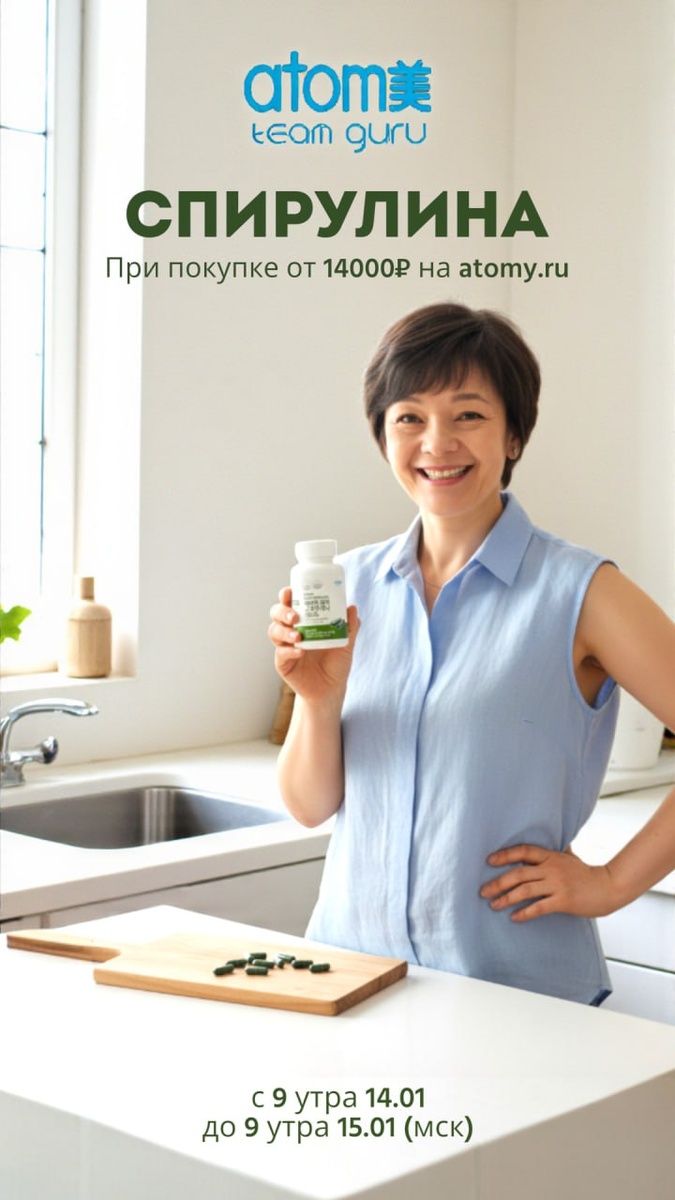 ? 🌌✨ Шутки в сторону. Спирулина — это не просто порошок. Это 3.5 миллиарда лет эволюции, упакованные в одну капсулу. Представьте себе растение, которое: ☀️ Заряжает энергией лучше, чем третья чашка кофе (без дрожи в руках). 🛡 Строит непробиваемый щит для иммунитета. 🧠 Кормит ваш мозг так, что он начинает генерировать идеи сам. 💚 Очищает тело, как весенний дождь — город. Это не магия. Это — спирулина. И у нас для вас космическое предложение. 🚀 АКЦИЯ: СПИРУЛИНА В ПОДАРОК! С 9 утра 14 января до 9 утра 15 января сделай покупку. Спирулина – это ключ к бодрости, красивой коже и крепкому иммунитету. 📲 Мы в Макс: https://max.ru/AtomyGuRu 📱Канал в телеграм: https://dzen.ru/id/6236fd4f201b986c04e55b99 🌐Паблик ВКонтакте: https://vk.com/atomyguru #AtomyGuRu #Спирулина #Акция #Атоми 🔗 @АТОМИ - Бизнес из Кореи