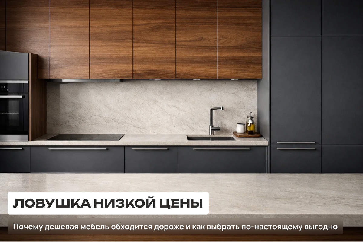 Видите разницу? На первый взгляд, вторая кухня кажется более выгодной, но из-за скрытых затрат на ремонт и более короткого срока службы реальная стоимость владения будет значительно выше.