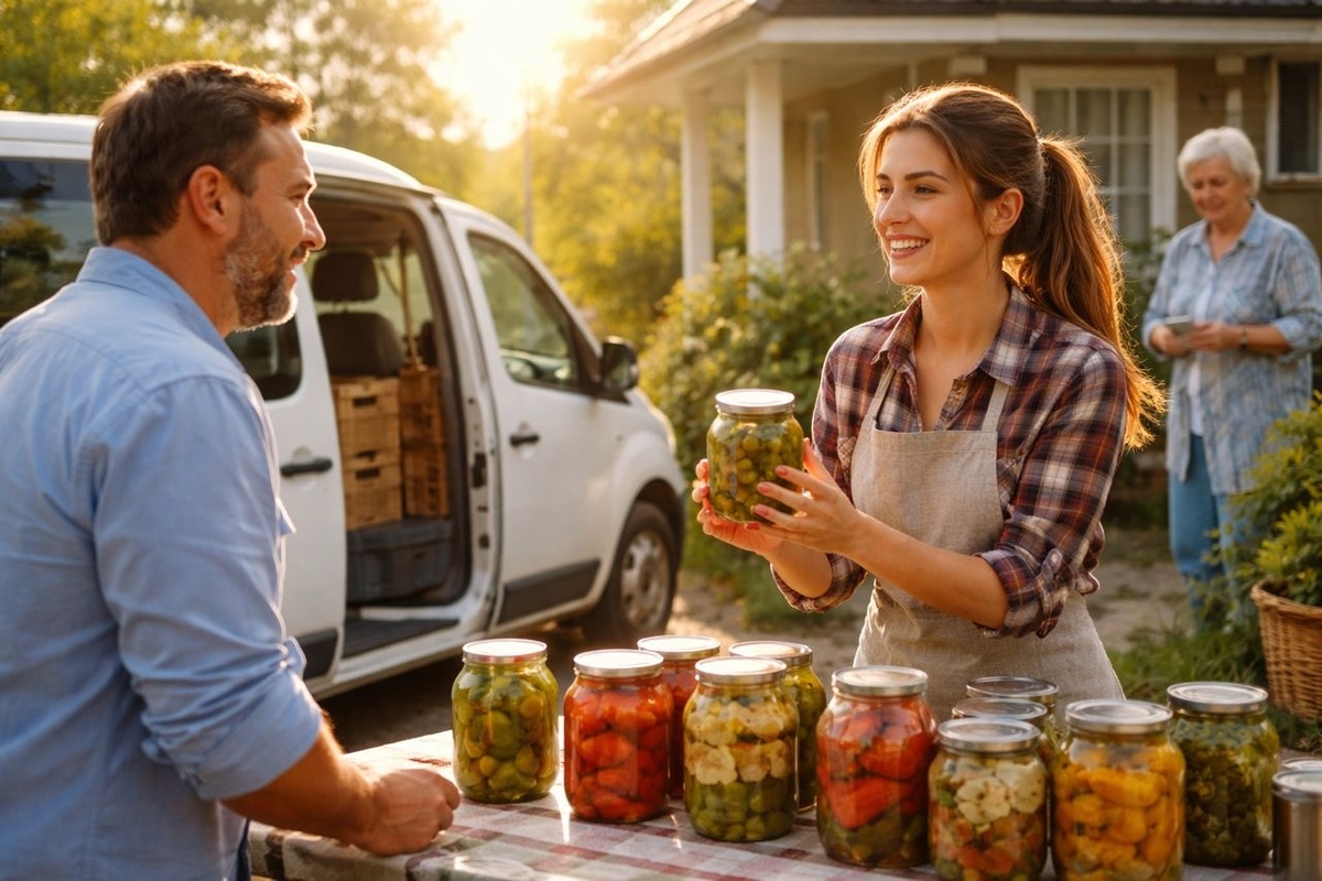 Подслушав разговор бабушки с врачом, Алина поняла, что на рынке будет спрос на натуральные соленья — ведь многие соседи жаловались на плохое самочувствие и искали что-то полезное. Она быстро начала готовить банки с огурцами, капустой и помидорами по бабушкиным старинным рецептам.