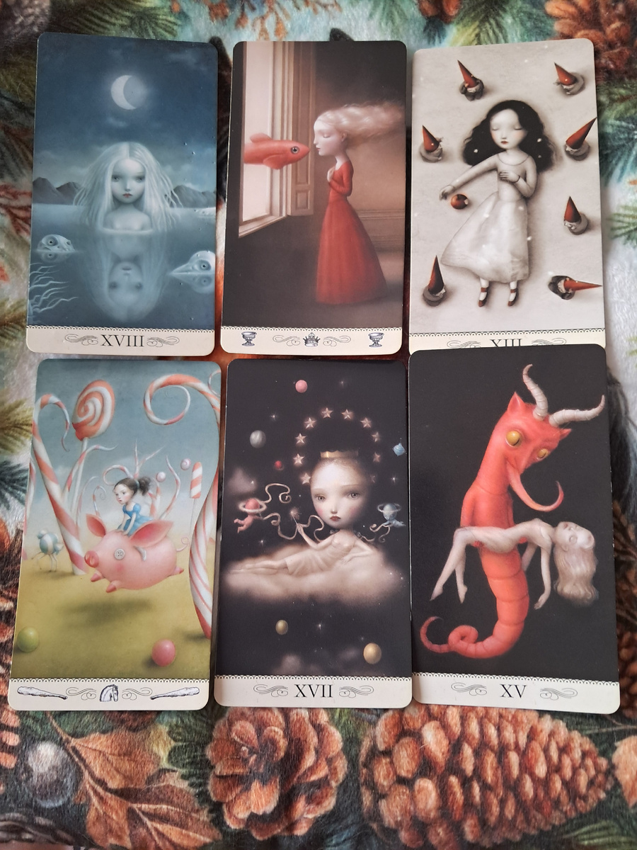 О, это очень сильные и точные комбинации для проработки кармических уроков. Колода Николлеты Чаколли "По ту сторону снов" говорит на языке архетипов, теней и коллективного бессознательного. Кармический урок здесь — это не наказание, а задача для эволюции души, повторяющийся сюжет, требующий осознания и исцеления.