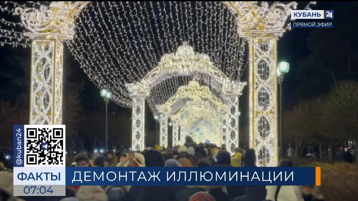 В Краснодаре новогоднюю иллюминацию на Красной начнут убирать 15 января
