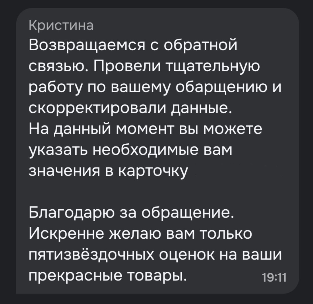 ) 1️⃣Предварительно сфотографируйте товар с линейкой и рулеткой со всех 3 сторон. 2️⃣Сфотографируйте товар на весах (это обязательно). 3️⃣Откройте нужный путь в поддержке. “Товары и цены” ➡️ “Карточка товара” ➡️ “Наполнение карточки” ➡️ “ОВХ товара размер и вес” ➡️ “Другой вопрос по ОВХ” 4️⃣Пишем слово "Габариты" и высылаем: 🟠SKU ID товара; ⚫️Корректные значения длины, ширины, высоты и веса, в миллиметрах и граммах; 🟠3 фото товара в упаковке с линейкой или мерной лентой рядом; ⚫️1 фото товара на весах, с чётким отображением веса. ‼️ В результате, в течение 3 дней габариты товара будут проверены и исправлены. ✔️ Перешли знакомому селлеру — инструкция точно пригодится 💎 ПОДПИСАТЬСЯ - База Мудрого Seller-a на Ozon Консультация Мудрого|Юнитка Ozon|Закрытый-чат продавцов