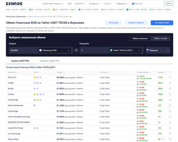 В 2026 году купить USDT в Воронеже стало проще благодаря развитию офлайн-обмена и появлению проверенных физических точек. Очный формат выбирают пользователи, которым важны прозрачность условий, личный контроль сделки и возможность получить профессиональную консультацию. Для быстрого поиска надёжных вариантов удобно использовать мониторинг Exnode, который позволяет оценить репутацию криптообменников в Воронеже, сравнить предложения и выбрать оптимальные условия для покупки USDT за рубли или наличные.